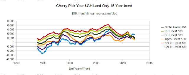 I prefer UAH as the best instrumental record, vastly superior to the Jones type surface statistical models. The only significant warming UAH shows over the last 32 years is a single step up coincident with the big 1998-2000 ENSO cycle. This looks like a small abrupt event, with no evidence of GHG warming over the entire period. CO2 sensitivity thus appears to be zero, making your claims incorrect.