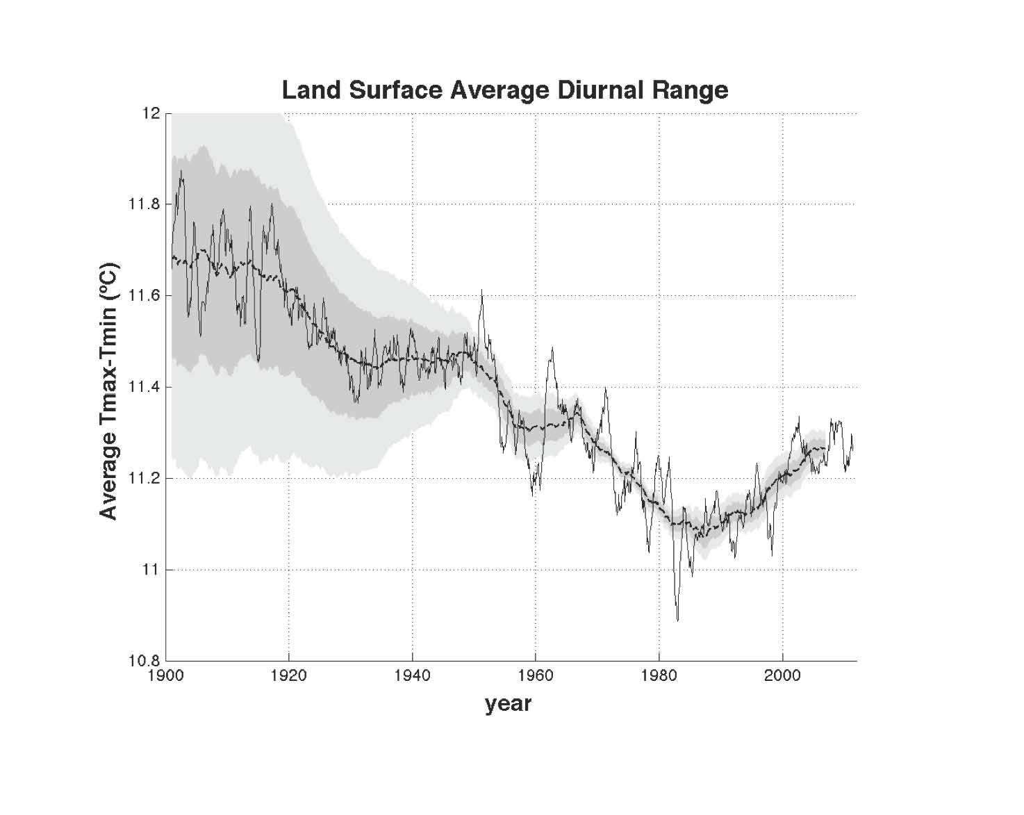 Figure 3: Change in diurnal temperature range from 1900 to 2012.