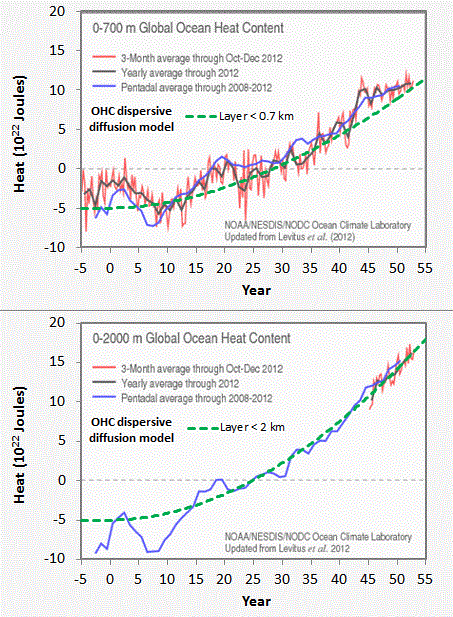 I just looked at Tisdale’s post on this and it appears to me that the temperature changes associated with these seemingly huge energy numbers are very small, on the order of 0.1C. Below 2000 meters it appears things are measured in 0.01C. Judging accelerations in such data seems to me rather suspect. Are we sure the signal is larger than the noise?