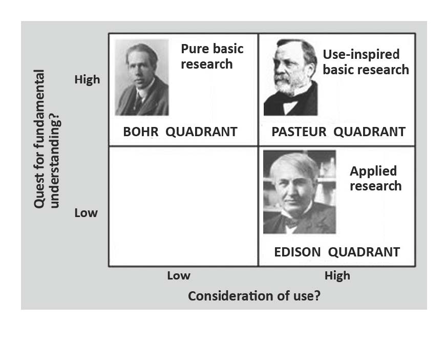 [This represents] a two-dimensional conceptual plane, with the vertical dimension representing the degree to which a given body of research is motivated by the quest of fundamental understanding, and the horizontal dimension the extent to which it’s motivated by considerations of use.
