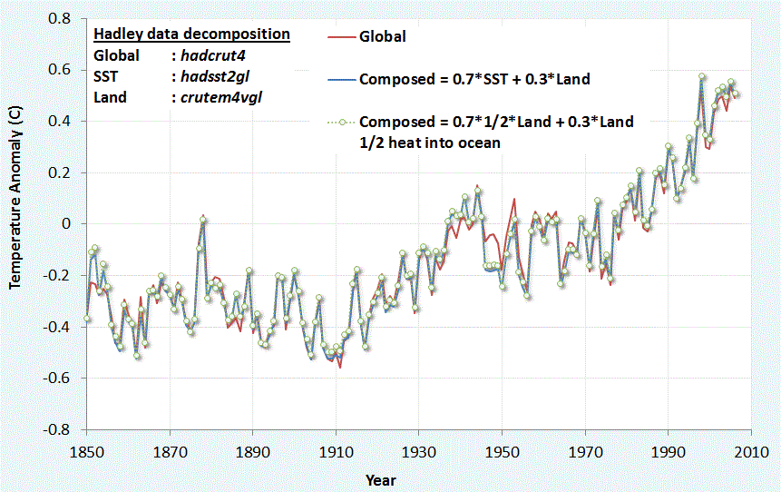 I did torture that. Using the Reynold’s Oiv2 absolute temperature I converted all three to “relative” energy anomaly. That just scales there responses to the actual changes in “surface” energy flux instead of temperature anomaly. Oh, I did invert the lower stratosphere so it is easier to compare. Since the stratosphere “mirrors” the changes in the rate of Ocean Heat uptake, you can get an rough approximation to compare with the ARGO data which while short also indicates a similar “approach” curve.