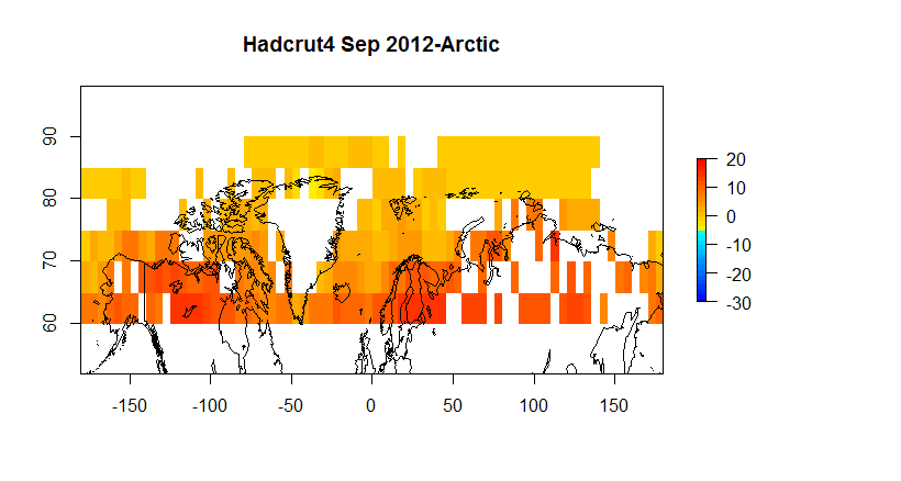 The bottom line is that one always has to make a choice when presented with missing data and that choice has consequences; sometimes they can be material. Up to now the choice between ignoring the arctic or interpolating hasn’t been material. It may still not be material, but it’s technically interesting.
