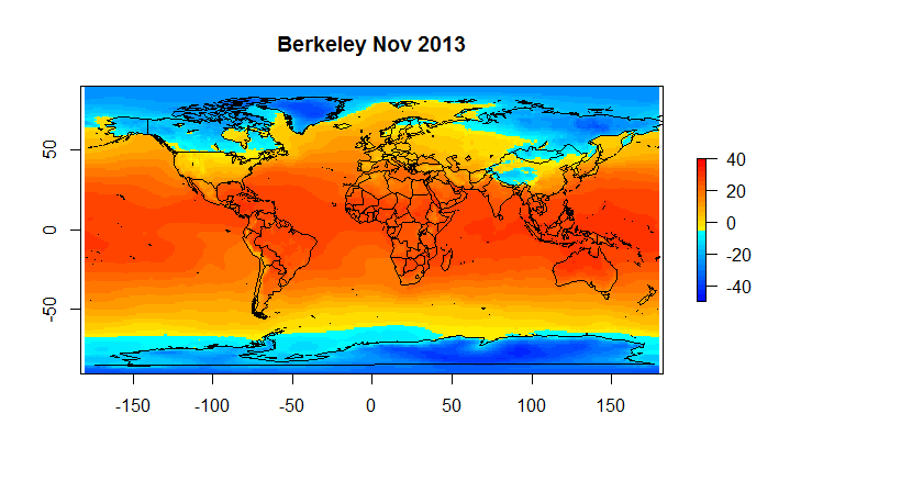 What that means is that you do not expect the air temperature as inferred by a satellite to match the temperature as recorded by an in situ thermometer, especially given the differences in observation practice. However, the temperature fields are highly correlated and in a future post ( or perhaps paper) I’ll show how the trend in the all three ( Berkeley, AIRS SAT and AIRS Skin) are nearly identical and detail the correlation structure which is quite remarkable given the differences in observation methodologies.