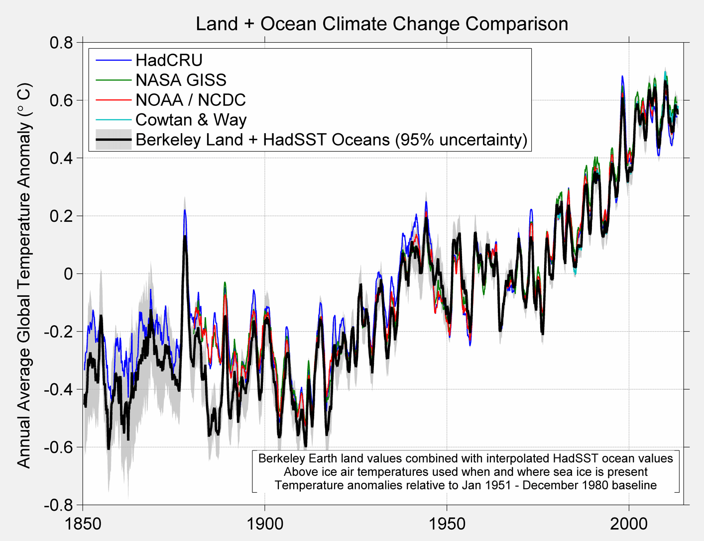 Figure 3A Berkeley Earth Global Temperature baseline and alternative treatment
