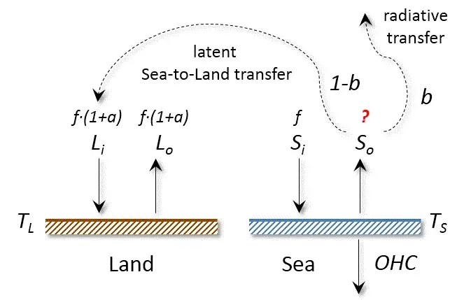 “The net energy balance is the sum of individual fluxes. The current uncertainty in this net surface energy balance is large, and amounts to approximately 17 Wm–2. This uncertainty is an order of magnitude larger than the changes to the net surface fluxes associated with increasing greenhouse gases in the atmosphere (Fig. 2b). The uncertainty is also approximately an order of magnitude larger than the current estimates of the net surface energy imbalance of 0.6 ±0.4 Wm–2 inferred from the rise in OHC. The uncertainty in the TOA net energy fluxes, although smaller, is also much larger than the imbalance inferred from OHC.”