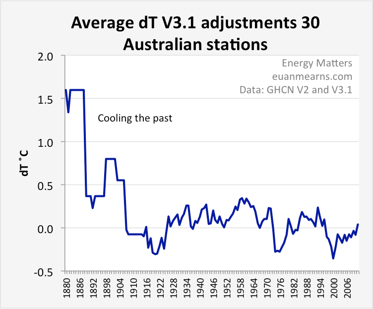 BoM Australia also make adjustments using a similar approach – on that has been much criticised by Jo Nova and Jennifer Marohasy among others. Although I cannot say for sure, I suspect that the BoM adjusted data is what goes into GHCN. BoM adjustments can change the sign as well as the magnitude of the trend