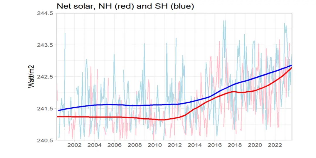 In an article entitled “State of the climate – summer 2023“, Judith Curry showed how unusual 2023 was in terms of the global radiation balance at the top of the atmosphere, the components of the surface energy balance, and the internal modes of climate variability driven by atmospheric and oceanic circulation patterns.
